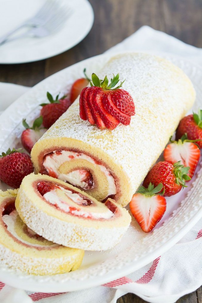 Même si la saison des fraises est finie, vous pouvez tout à fait les remplacer avec vos fruits frais préférés et de saison ! Pour plus de gourmandise, saupoudrez votre gâteau roulé de sucre glace, d’amandes effilées ou de crème s’il vous en reste.